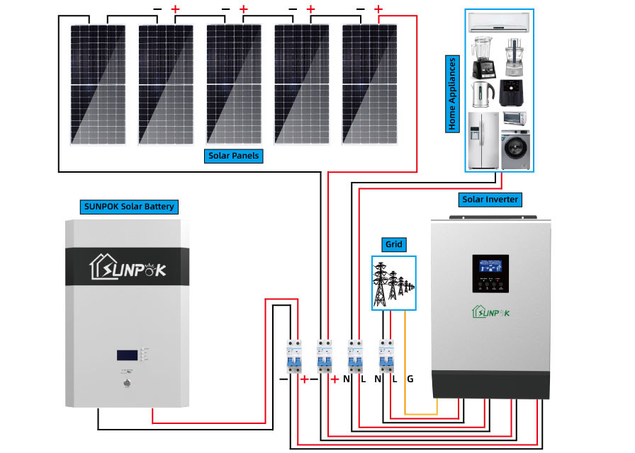 A energia de Sunpok confirmará quanto poder do picovolt, poder do inversor, e capacidade da bateria o sistema precisa de acordo com a colocação razoável de cada componente, para prolongar a vida útil do sistema.