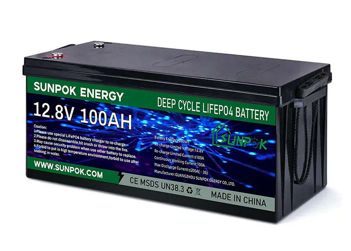 Bateria profunda do ciclo do fosfato do ferro do lítio do volt do volt 24V de Sunpok 12, projetada especificamente para baterias acidificadas ao chumbo do ciclo profundo com tamanhos padrão do bloco de BCI. É apropriado para ambientes do consumo de potência tais como o armazenamento das energias solares, o armazenamento das energias eólicas, o rv, os iate, e veículos de baixa velocidade. A vida útil é 5-8 vezes que de baterias acidificadas ao chumbo, e o peso são somente meios que de baterias acidificadas ao chumbo. BMS inteligente incorporado (sistema de gestão da bateria), com software avançado da proteção, pode inteiramente proteger a segurança da bateria.